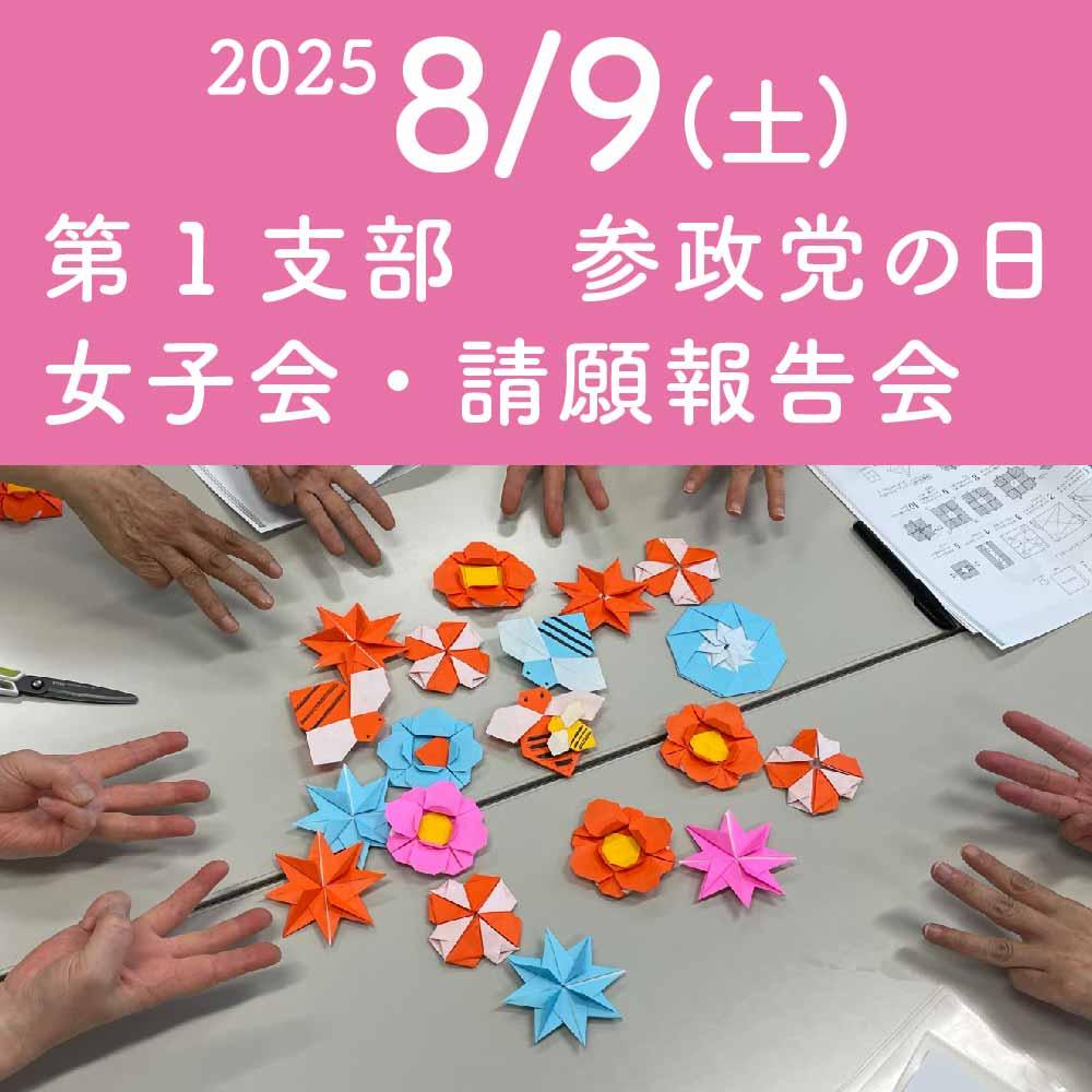第1支部 参政党の日 13:00~ 会場:アイーナ 女子会、請願報告会 |